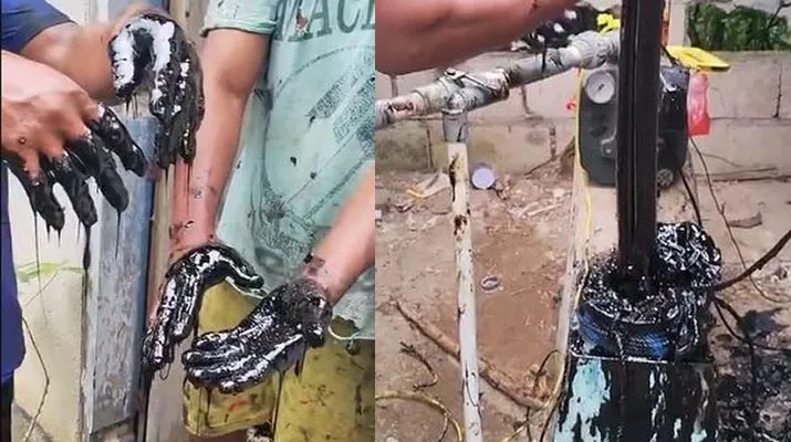 Video yang viral memperlihatkan cairan hitam itu keluar dari pipa dengan konsistensi yang cukup kental. Dalam rekaman tersebut, terdengar suara seorang pria yang menjelaskan situasi yang terjadi.