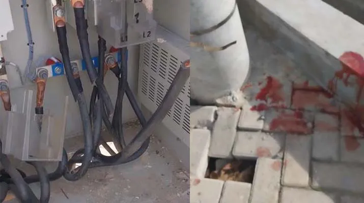 Selain itu, tampak pula bercak darah di sekitar lokasi gardu. Dugaan sementara, darah tersebut berasal dari pelaku yang tersetrum saat berupaya memotong kabel bertegangan tinggi.