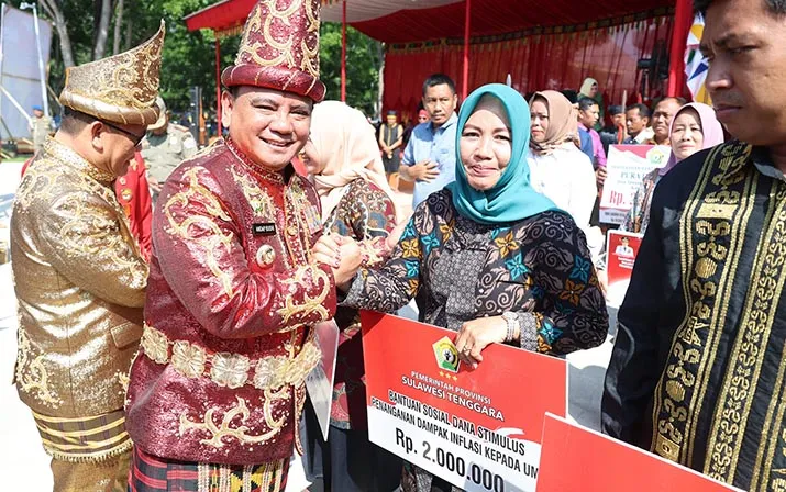 LENSATENGGARA.COM, KENDARI – Penjabat (Pj) Gubernur Sulawesi Tenggara (Sultra), Andap Budi Revianto, menyerahkan bantuan program pemerintah kepada masyarakat Kabupaten Konawe, Kamis (21/12/2023).