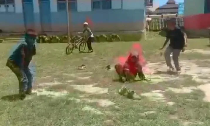 Sebuah video yang memperlihatkan aksi dugaan perundungan terhadap seorang siswi di halaman SD Negeri 7 Barangka, Kabupaten Muna Barat (Mubar), Sulawesi Tenggara, viral di media sosial. (Foto : Istimewa)